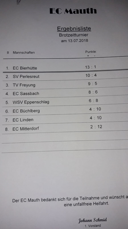 Brotzeitturnier des EC Mauth am 13.07.2018