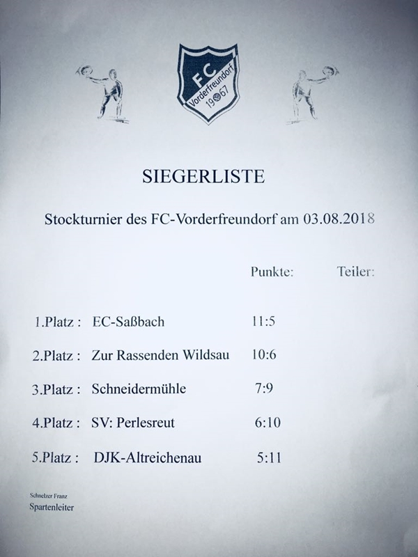 Pokalturnier des FC-Vorderfreundorf am 04.08.2018