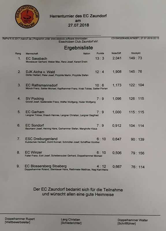 Herrenturnier des EC-Zaundorf am 27.07.2018