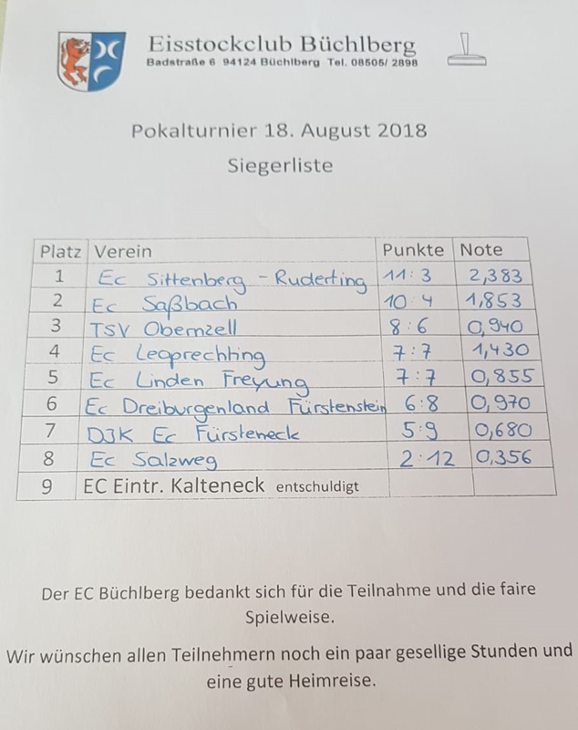 Pokalturnier des EC-Büchlberg am 18.08.2018