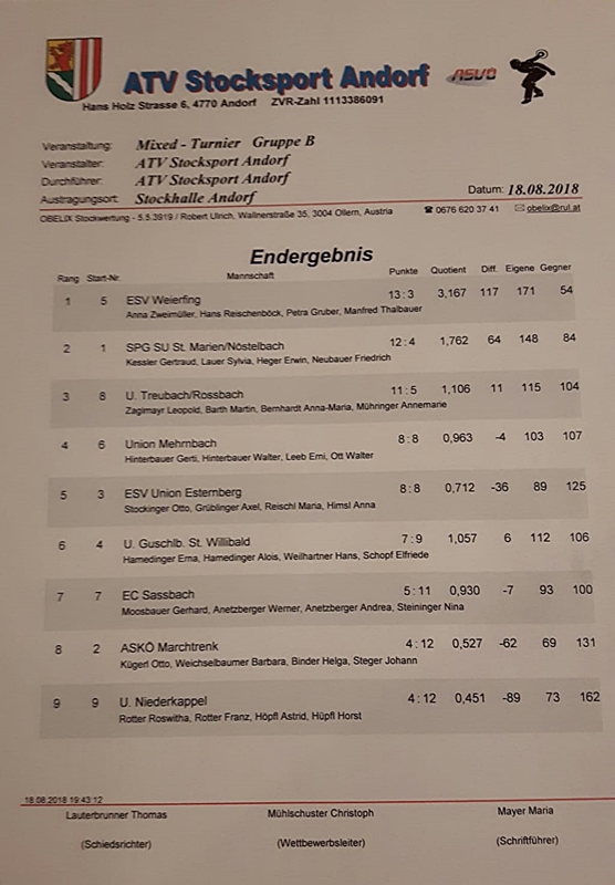Mixed-Turnier des ATV Stocksport Andorf am 18.08.2018