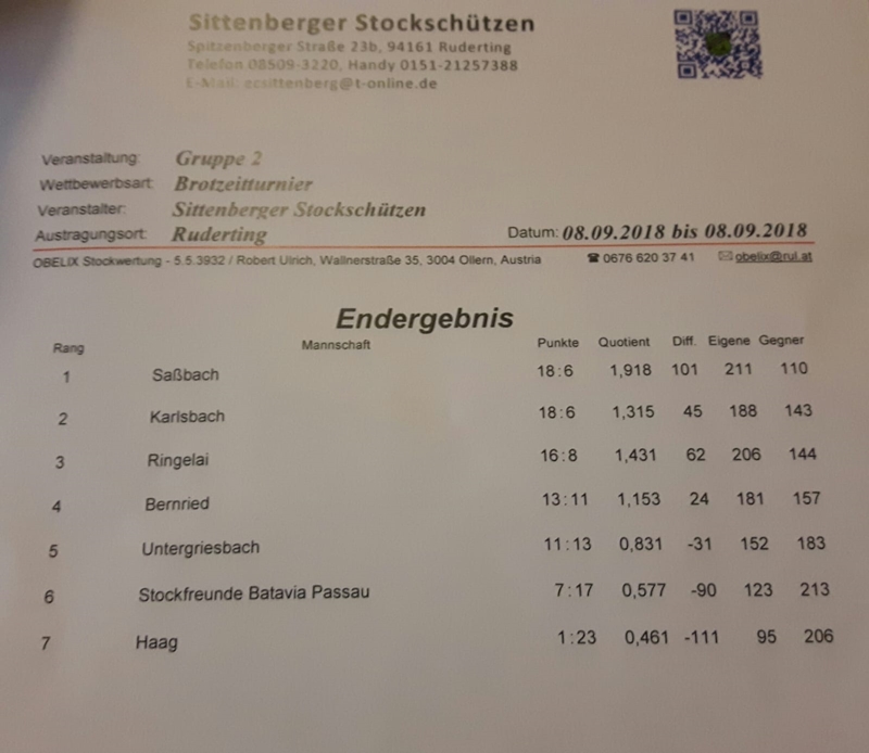 Brotzeitturnier der Sittenberger Stockschützen am 08.09.2018
