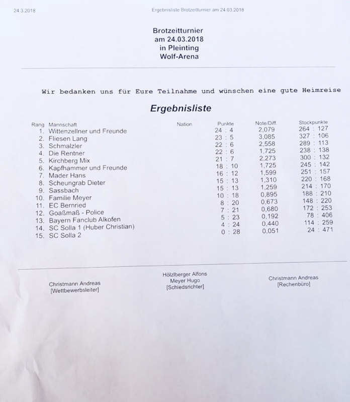 Brotzeitturnier des EC Eintracht Pleinting am 24.03.2018