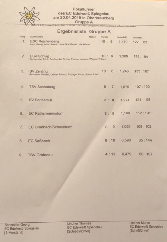Pokalturnier am 20.04.2018 des EC Edelweiß-Spiegelau