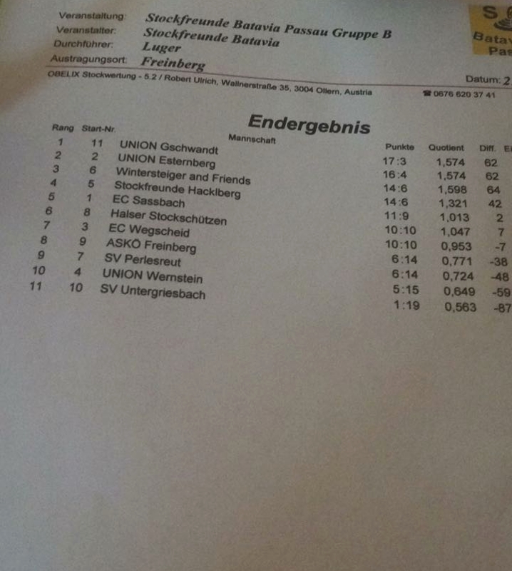 Pokalturnier am 21.04.2018 der Stockfreunde Batavia Passau