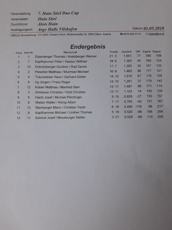Duo-I: Anetzberger Werner, Elsenberger ThomasDuo-II: Moosbauer Gerhard, Weber MaxDuo-III: Ebertsberger Christian, Rauch Andreas