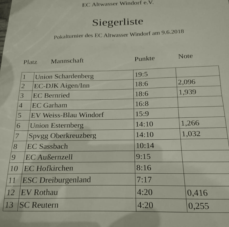Pokalturnier EC Altwasser Windorf 09.06.2018