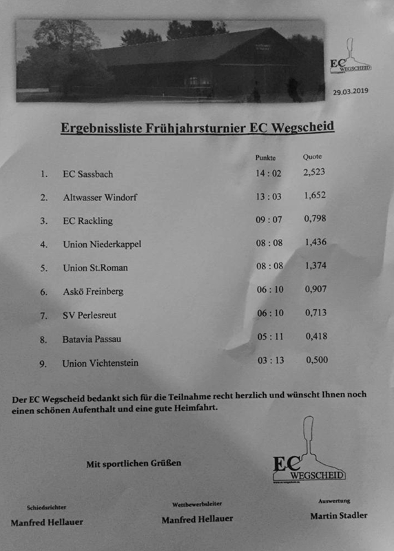 Frühjahrsturnier am 29.03.2019 in Wegscheid