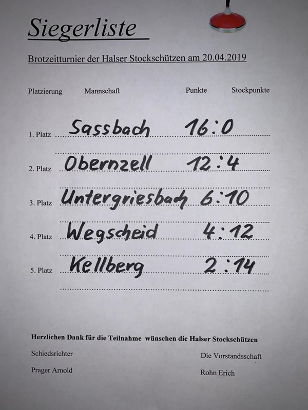 Brotzeitturnier der Halser Stockschützen am 20.04.2019 in Hacklberg