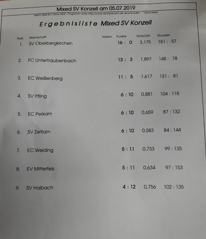 Pokalturnier Mixed des SV-Konzell am 05.07.2019