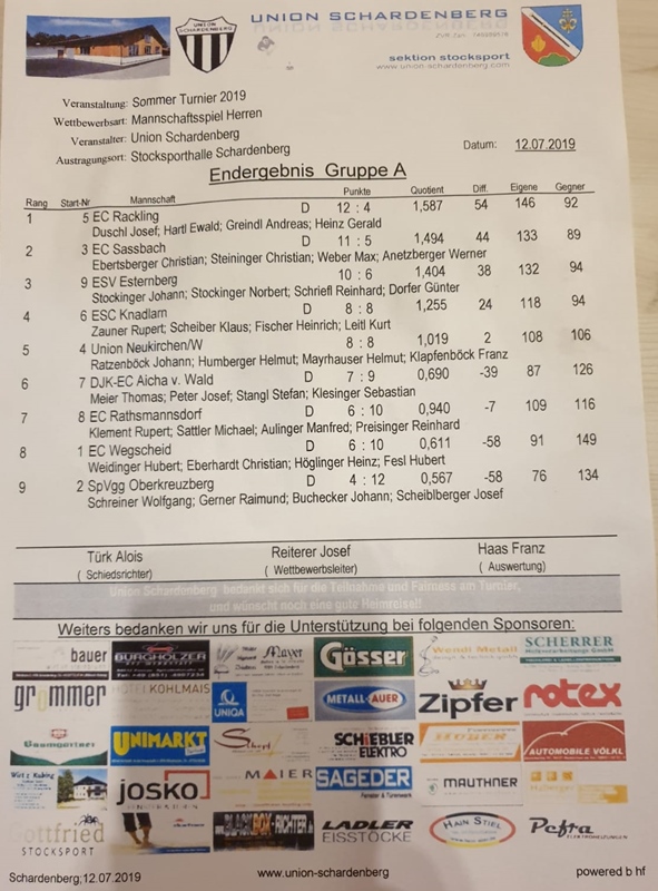 Pokalturnier der Union Schardenberg am 12.07.2019