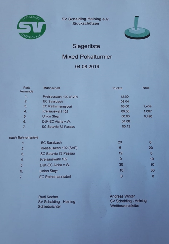 Pokalturnier Mixed SV Schalding-Heining am 04.08.2019