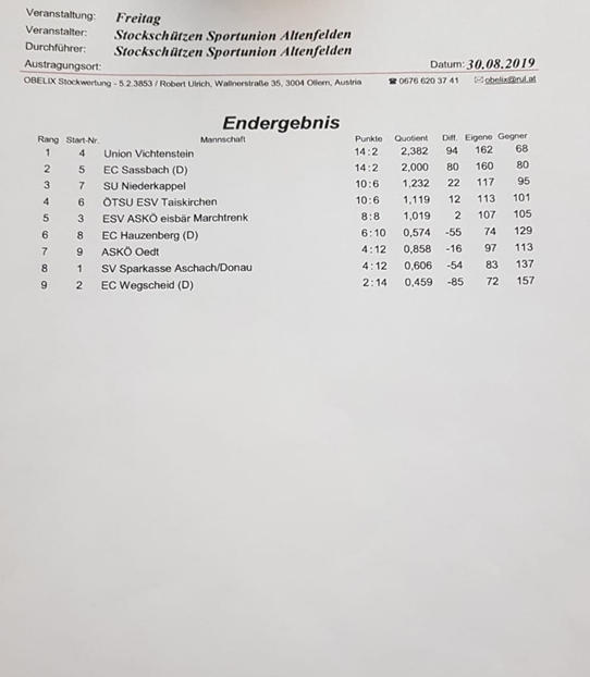 Pokalturnier der Sportunion Altenfelden 30.08.2019