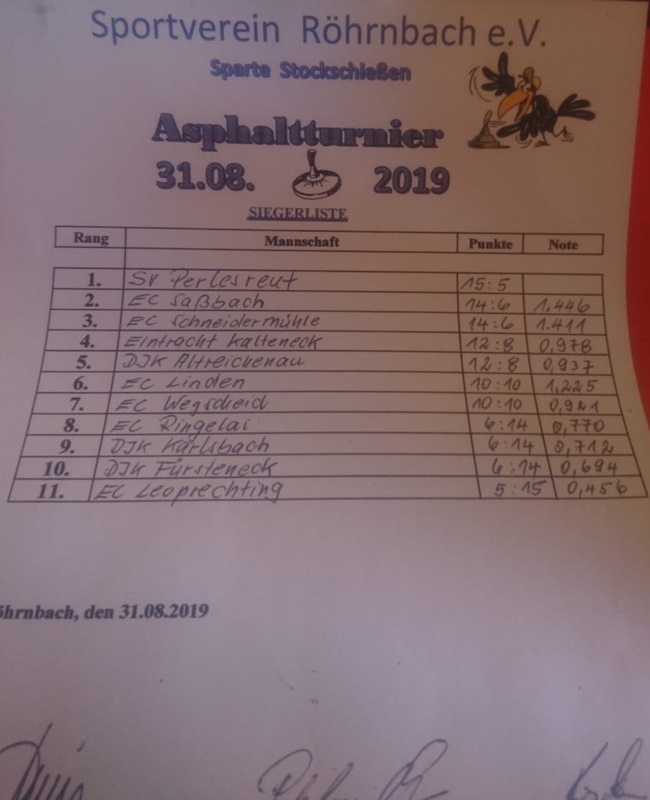 Pokalturnier Sprtverein Röhrnbach am 31.08.2019
