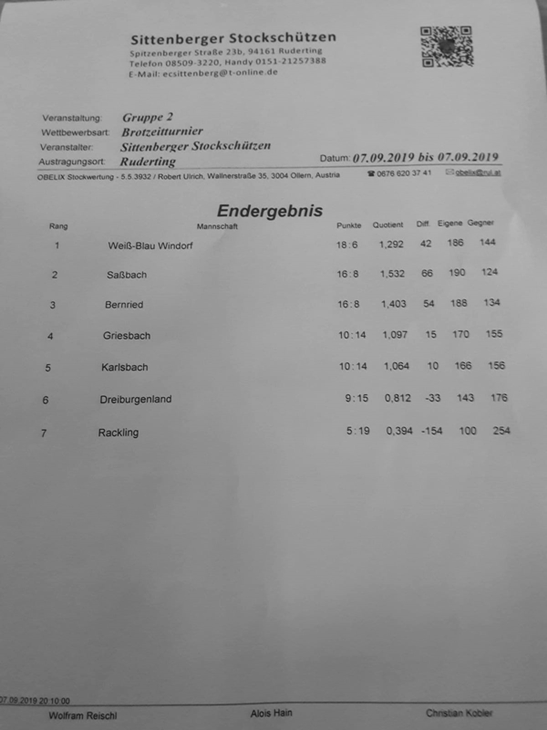 Brotzeitturnier in Sittenberg am 07.09.2019