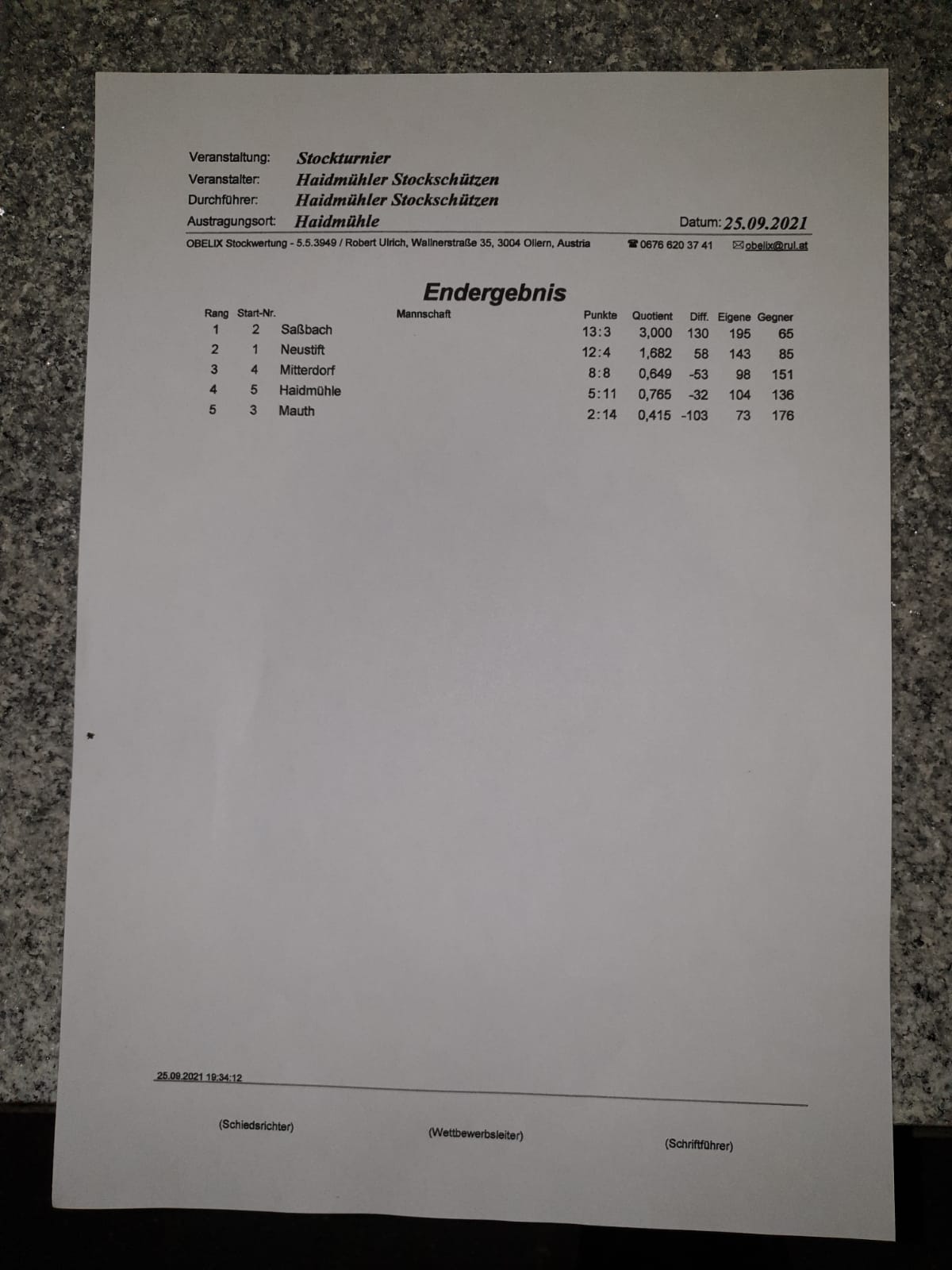Brotzeitturnier der Haidmühler Stockschützen am 25.09.2021