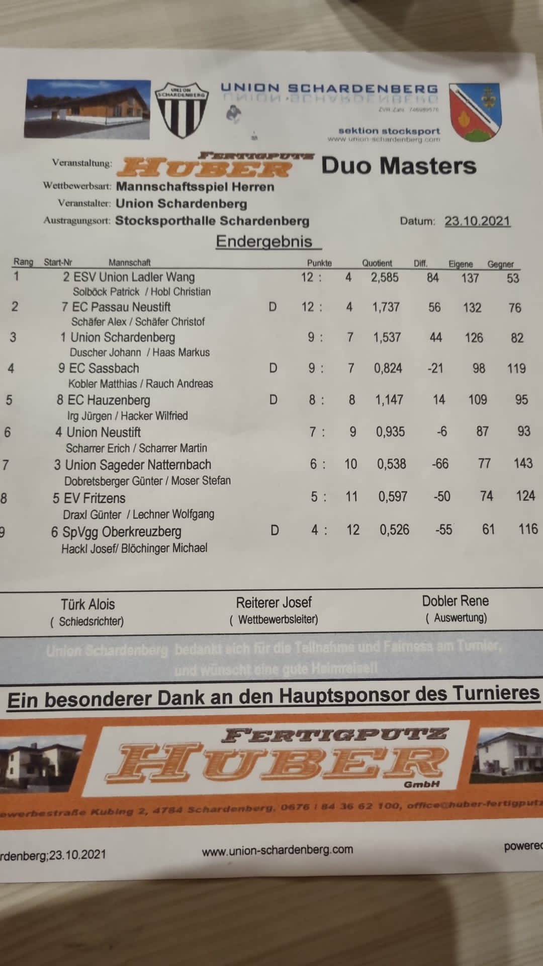 Duo Turnier in Schardenberg am 23.10.2021