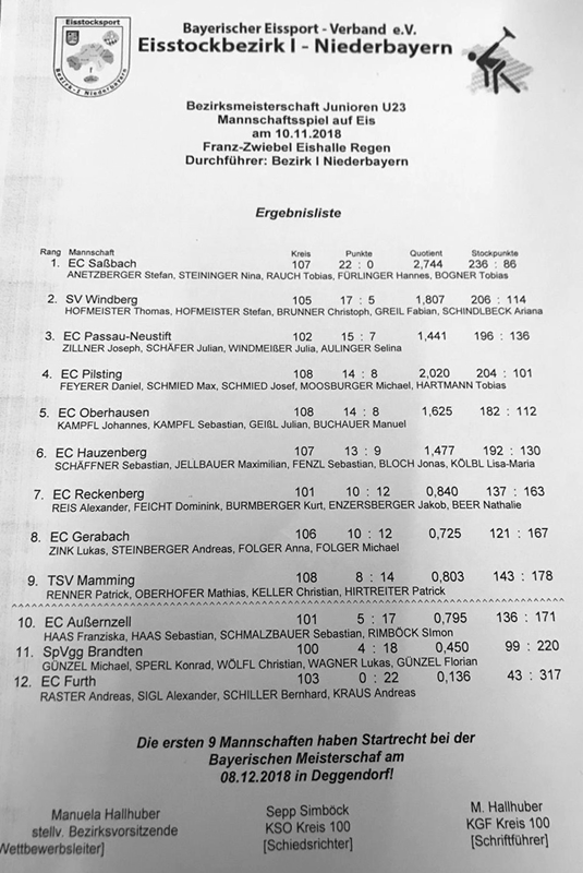Bezirksmeisterschaft U23 auf Eis 10.11.2018