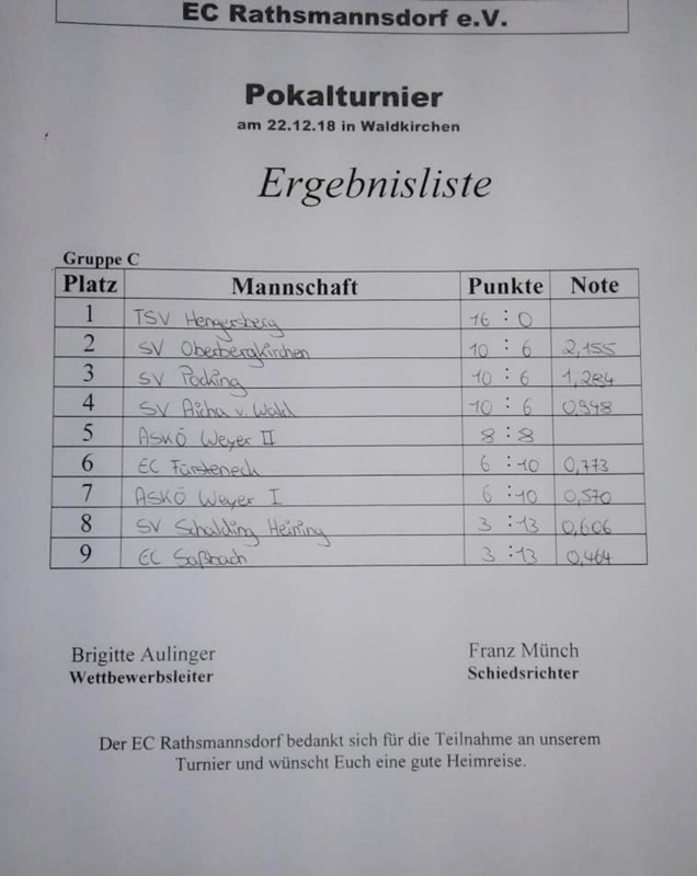 Pokalturnier des EC Rathsmannsdorf am 22.12.2018 in Waldkirchen