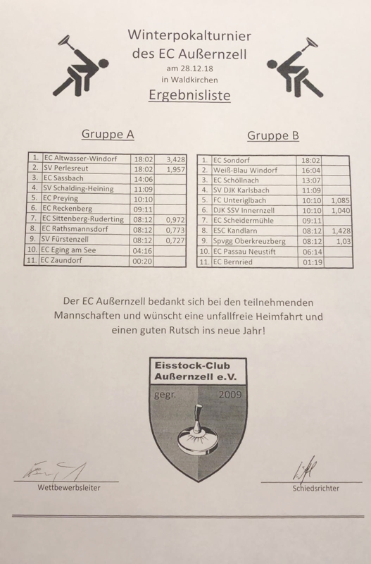 Pokalturnier Aussernzell 28.12.2018