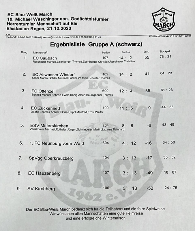 Waschinger Gedächtnisturnier 21.10.2023 in Regen