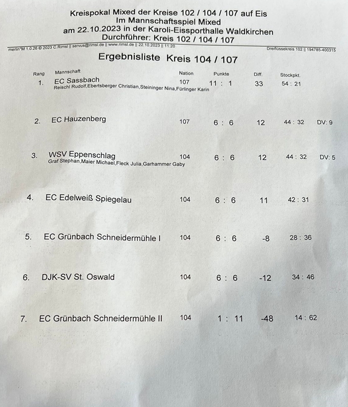 Kreispokal Mixed 22.10.2023 in Waldkirchen