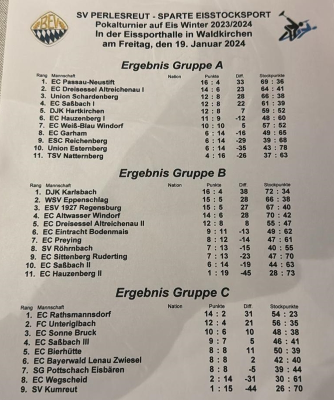 4. Pokalturnier Perlesreut 19.01.2024 Waldkirchen