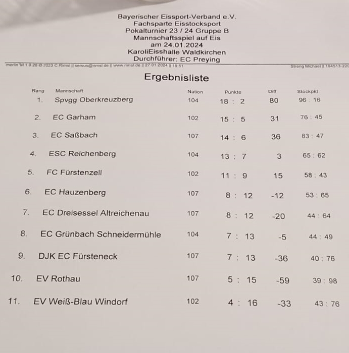 Pokalturnier Preying am 24.01.2024 in Waldkirchen